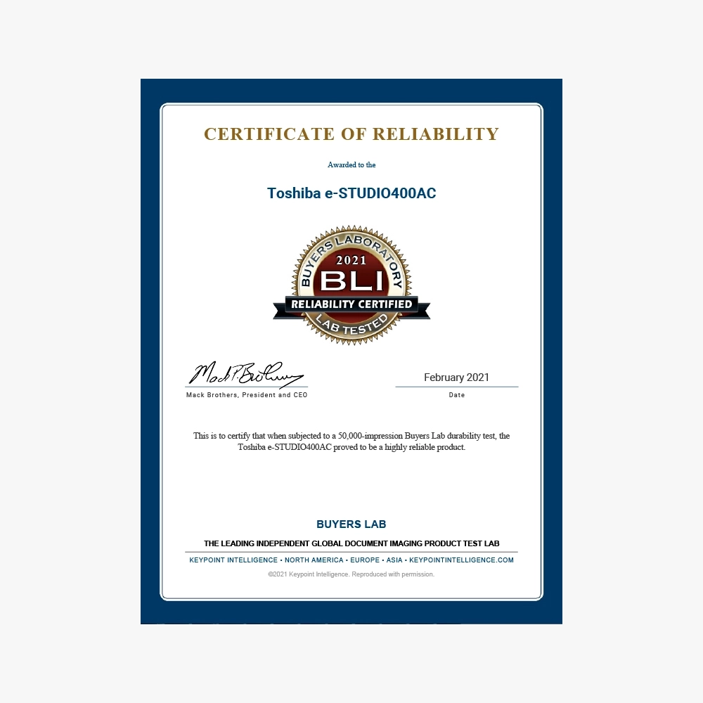 First Copy Out Time Approx. 7.2 seconds (colour), 5.7 seconds (monochrome)